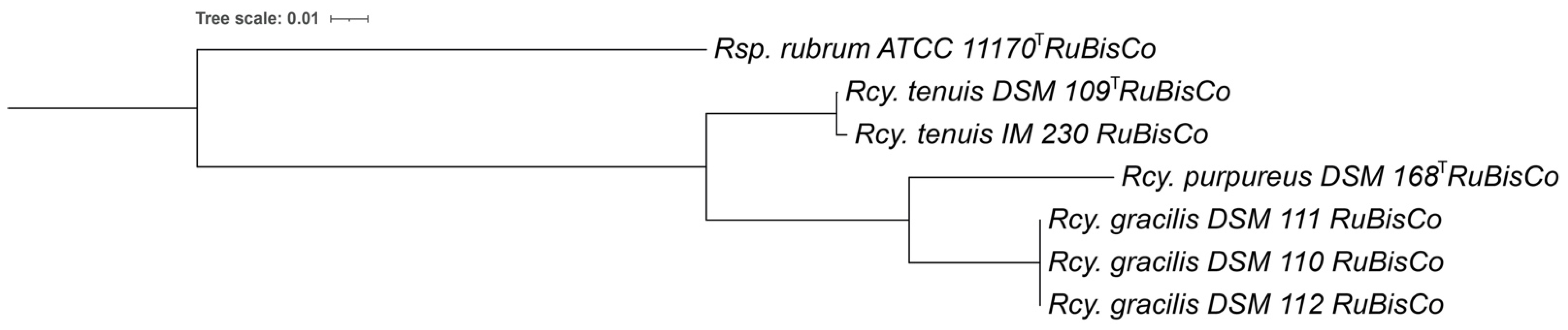 - Badger, M.R.; Bek, E.J. Multiple Rubisco forms in proteobacteria: Their functional significance in relation to CO2 acquisition by the CBB cycle. J. Exp. Bot. 2008, 59, 1525–1541. [Google Scholar] [CrossRef] [PubMed]