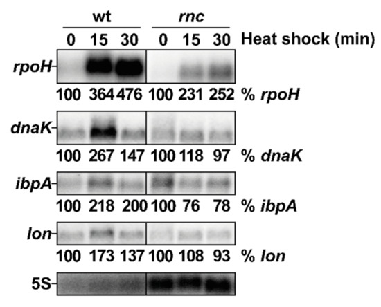 3.6. Induction of Three Genes of the RpoH Regulon Is Defective in the rnc Mutant