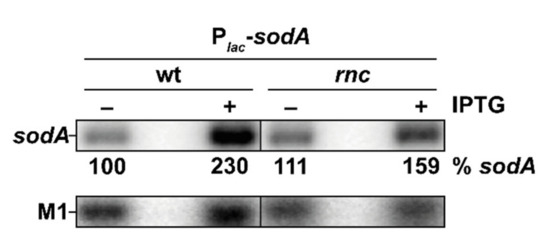 3.8. RNase III and PNPase Stabilize sodA mRNA