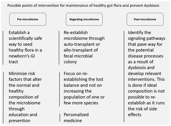 Proposed interventions that may help maintain microbiome, leading to homeostasis in the brain and the body.