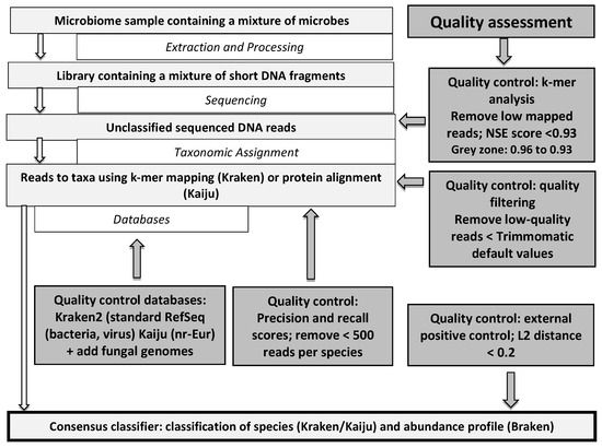 microbiome; mycobiome; virome; metagenomics; shotgun; Kraken2; Bracken; Kaiju; quality assessment; clinical microbiology 1. Introduction
