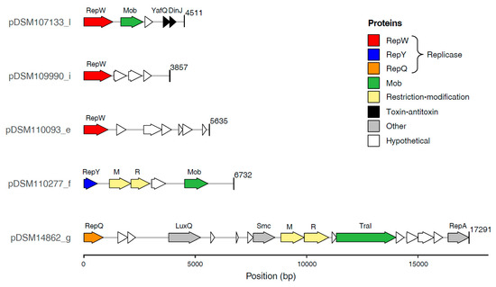 - Petersen, J. Phylogeny and compatibility: Plasmid Classification in the Genomics Era. Arch. Microbiol. 2011, 193, 313–321. [Google Scholar] [CrossRef] [PubMed]