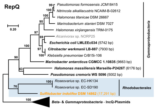 Freese, H.M.; Ringel, V.; Overmann, J.; Petersen, J. Beyond the ABCs—Discovery of Three New Plasmid Types in Rhodobacterales (RepQ, RepY, RepW). Microorganisms 2022, 10, 738. https://doi.org/10.3390/microorganisms10040738