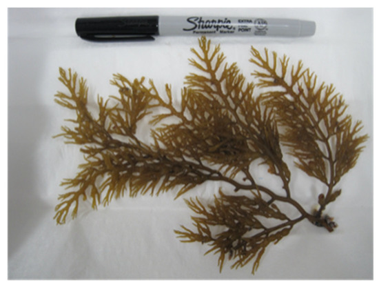 Brown macroalgae Stephanocystis osmundacea, sample A-19 from the 2 August 2019, field trip and source of inoculum for the Acaryochloris culture analyzed in this study.