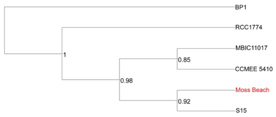 3.5. Relationship of Strain Moss Beach with Other Acaryochloris Strains