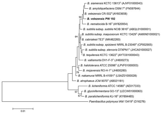 - Rabbee, M.F.; Ali, M.S.; Choi, J.; Hwang, B.S.; Jeong, S.C.; Baek, K.-H. Bacillus velezensis: A valuable member of bioactive molecules within plant microbiomes. Molecules 2019, 24, 1046. [Google Scholar] [CrossRef] [Green Version]