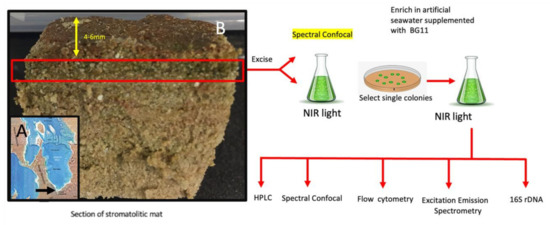 Cyanobacteria were isolated from stromatolitic mats located in the hypersaline environment at Nilemah in the Hamelin Pool (see Section 2.1 and Figure 1A).
