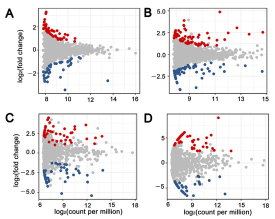- Love, M.I.; Huber, W.; Anders, S. Moderated estimation of fold change and disperation for RNA-seq data with DESeq2. Genome Biol. 2014, 15, 550–570. [Google Scholar] [CrossRef]