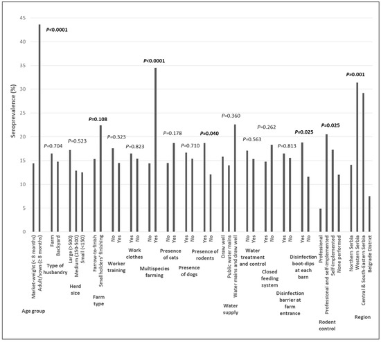 Betić, N.; Karabasil, N.; Djurković-Djaković, O.; Ćirković, V.; Bobić, B.; Branković Lazić, I.; Djordjević, V.; Klun, I. Seroprevalence, Direct Detection and Risk Factors for Toxoplasma gondii Infection in Pigs in Serbia, and Influence of Biosecurity Measures. Microorganisms 2022, 10, 1069. https://doi.org/10.3390/microorganisms10051069