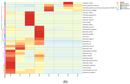- Jo, H.E.; Kwon, M.S.; Whon, T.W.; Kim, D.W.; Yun, M.; Lee, J.; Shin, M.Y.; Kim, S.H.; Choi, H.J. Alteration of gut microbiota after antibiotic exposure in finishing swine. Front. Microbiol. 2021, 12, 596002. [Google Scholar] [CrossRef]