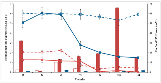 Furfural and HMF are the most representative inhibitors of yeast growth [5,7]. Researchers have reported that these aldehydes can damage DNA, hinder RNA and protein synthesis and reduce enzymatic activity, thereby inhibiting cell growth [6,19,20,21,22,23].