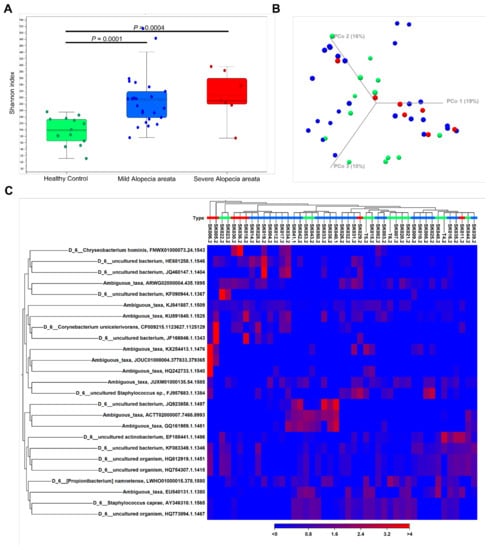 APA StyleWon, E. J., Jang, H. H., Park, H., & Kim, S. J. (2022). A Potential Predictive Role of the Scalp Microbiome Profiling in Patients with Alopecia Areata: Staphylococcus caprae, Corynebacterium, and Cutibacterium Species. Microorganisms, 10(5), 864. https://doi.org/10.3390/microorganisms10050864