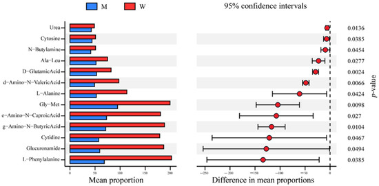 - Parks, D.H.; Tyson, G.W.; Hugenholtz, P.; Beiko, R.G. STAMP: Statistical analysis of taxonomic and functional profiles. Bioinformatics 2014, 30, 3123–3124. [Google Scholar] [CrossRef] [Green Version]