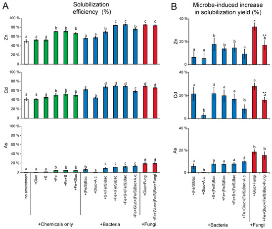 - Hao, X.; Zhu, P.; Zhang, H.; Liang, Y.; Yin, H.; Liu, X.; Bai, L.; Liu, H.; Jiang, H. Mixotrophic acidophiles increase cadmium soluble fraction and phytoextraction efficiency from cadmium contaminated soils. Sci. Total Environ. 2019, 655, 347–355. [Google Scholar] [CrossRef]