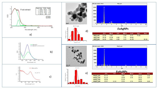 | E. uniflora (Pitanga) | Water | AgNPs: 422 nm Size: ~32 nm Zeta: −22 mV PDI: 0.369 AuNPs: 535 nm Size: ~11 nm Zeta: −14 mV PDI: 0.451 | E. coli ATCC 25922, E. coli O44:H18 EAEC042 (clinical isolate), B. subtilis ATCC 6633, K. pneumoniae ATCC 700603, Pe aeruginosa ATCC 27853, Se Typhimurium ATCC 14028, S. aureus ATCC 25923 and clinical isolates of methicillin-resistant Se aureus (MRSA), and E. faecalis, and C. albicans ATCC 10231 | This work |