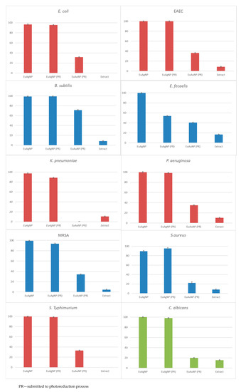 Eugenia uniflora L. Silver and Gold Nanoparticle Synthesis, Characterization, and Evaluation of the Photoreduction Process in Antimicrobial Activities