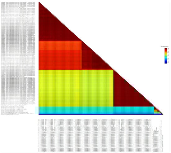 - Muhire, B.M.; Varsani, A.; Martin, D.P. Sdt: A virus classification tool based on pairwise sequence alignment and identity calculation. PLoS ONE 2014, 9, e108277. [Google Scholar]
