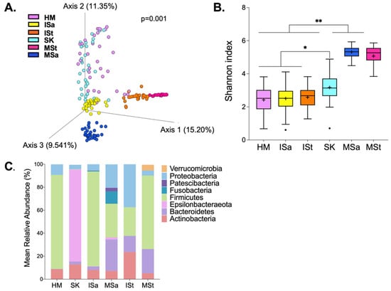 3.2. Bacterial Composition among Maternal and Infant Body Sites