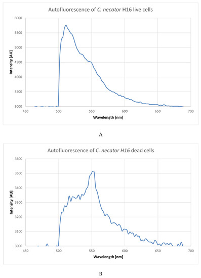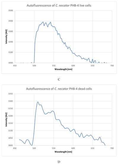 - Mihalcescu, I.; Van-Melle Gateau, M.; Chelli, B.; Pinel, C.; Ravanat, J.-L. Green autofluorescence, a double edged monitoring tool for bacterial growth and activity in micro-plates. Phys. Biol. 2015, 12, 066016. [Google Scholar] [CrossRef]