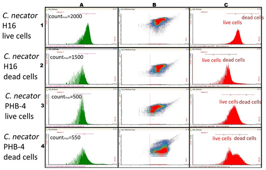 - Li, M.; Wilkins, M. Flow cytometry for quantitation of polyhydroxybutyrate production by Cupriavidus necator using alkaline pretreated liquor from corn stover. Bioresour. Technol. 2019, 295, 122254. [Google Scholar] [CrossRef]
