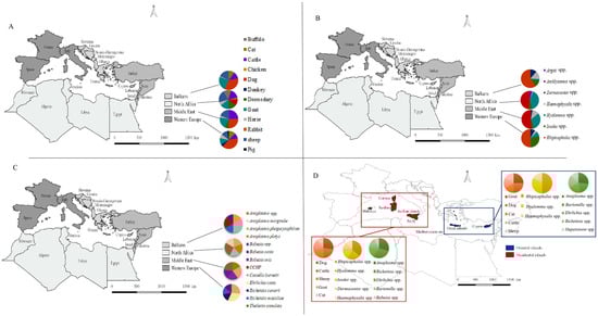The aim of this study was to review, according to PRISMA guidelines, the literature published between 2000 and early 2021 addressing the presence of TBPs on domestic animals and their ticks in the countries of the Mediterranean Basin, with the following objectives: