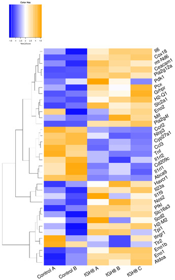 Unsupervised hierarchical clustering based on expression of metabolism-related DEGs between fGH8 versus Control BMDCs.