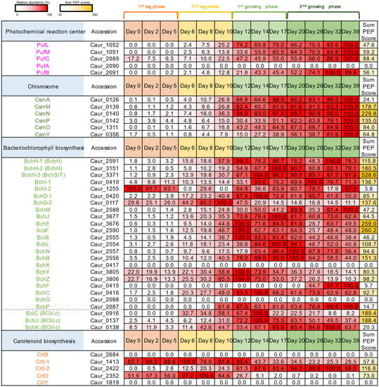 APA StyleKawai, S., Shimamura, S., Shimane, Y., & Tsukatani, Y. (2022). Proteomic Time-Course Analysis of the Filamentous Anoxygenic Phototrophic Bacterium, Chloroflexus aurantiacus, during the Transition from Respiration to Phototrophy. Microorganisms, 10(7), 1288. https://doi.org/10.3390/microorganisms10071288
