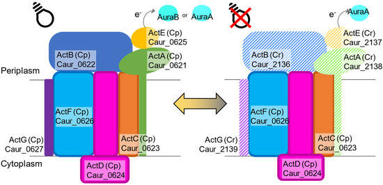 - Tsukatani, Y.; Nakayama, N.; Shimada, K.; Mino, H.; Itoh, S.; Matsuura, K.; Hanada, S.; Nagashima, K.V.P. Characterization of a blue-copper protein, auracyanin, of the filamentous anoxygenic phototrophic bacterium Roseiflexus castenholzii. Arch. Biochem. Biophys. 2009, 490, 57–62. [Google Scholar] [CrossRef]