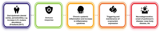 Potential link between oral dysbiosis and neurodegenerative diseases of alpha-synuclein pathology [72].