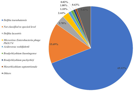 Acidovorax wohlfahrti (1.10%); however, it should be highlighted that 15.69% of the consortium readings corresponded to unidentified organisms at species level. The bacterial orders found are shown in