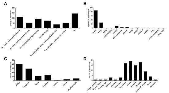 Each of these 48 households received a new, comprehensive questionnaire (Table S2) on the number, age, and gender of the members of the household. In addition, the questionnaire asked about pets, illnesses in recent weeks, and visitors during the sampling period. Furthermore, questions were asked about a possible malodour problem, the use of different detergents/additives, and commonly used washing programs.