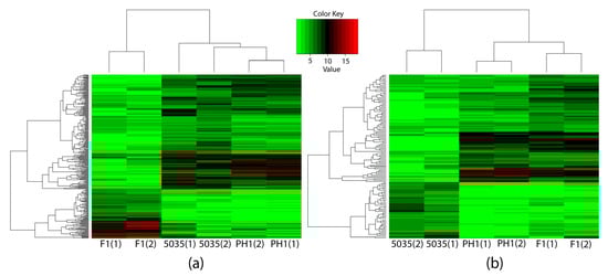 - Anders, S.; Huber, W. Differential Expression of RNA-Seq Data at the Gene Level—The DESeq Package; European Molecular Biology Laboratory: Heidelberg, Germany, 2013. [Google Scholar]