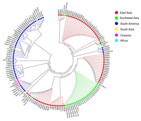 - Kumar, S.; Stecher, G.; Li, M.; Knyaz, C.; Tamura, K. MEGA X: Molecular Evolutionary Genetics Analysis across Computing Platforms. Mol. Biol. Evol. 2018, 35, 1547–1549. [Google Scholar] [CrossRef]