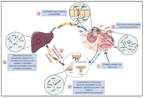 4.5. Ruminal Microbiota Dysbiosis Leads to Bacterial Translocation, Causing Inflammation and Related Diseases