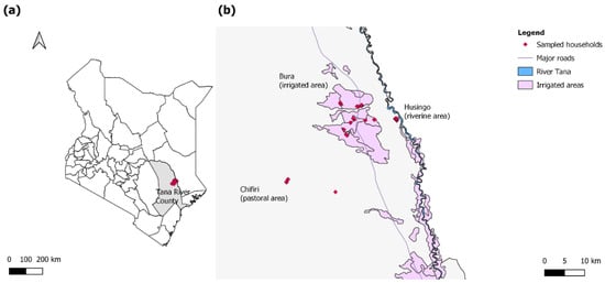 - Kairu-Wanyoike, S.; Nyamwaya, D.; Wainaina, M.; Lindahl, J.; Ontiri, E.; Bukachi, S.; Njeru, I.; Karanja, J.; Sang, R.; Grace, D.; et al. Positive association between Brucella spp. seroprevalences in livestock and humans from a cross-sectional study in Garissa and Tana River Counties, Kenya. PLoS Negl. Trop. Dis. 2019, 13, e0007506. [Google Scholar] [CrossRef][Green Version]