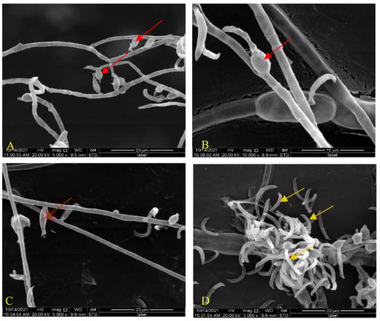 2.3. The Morphology and Pathogenicity against Nematodes of H. anguillulae YMF 1.01751 Observed by Scanning Electron Microscopy