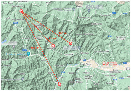 All positive animals were hunted from different parts belonging to the Ascoli Piceno province, but included in an area range between 5 and 20 km. More detailed information is illustrated in Table 3 and Figure 1.