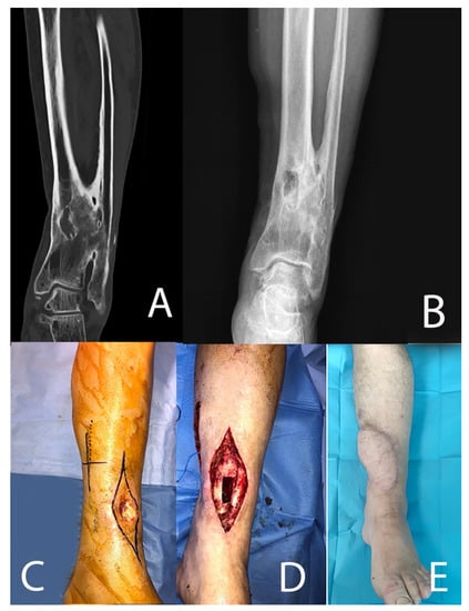 - Musharafieh, R.; Osmani, O.; Musharafieh, U.; Saghieh, S.; Atiyeh, B. Efficacy of microsurgical free-tissue transfer in chronic osteomyelitis of the leg and foot: Review of 22 cases. J. Reconstr. Microsurg. 1999, 15, 239–244. [Google Scholar] [CrossRef] [PubMed]