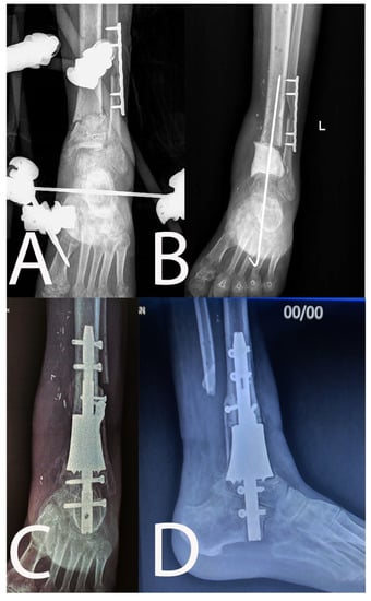 - Schottel, P.C.; Muthusamy, S.; Rozbruch, S.R. Distal tibial periarticular nonunions: Ankle salvage with bone transport. J. Orthop. Trauma 2014, 28, e146–e152. [Google Scholar] [CrossRef]