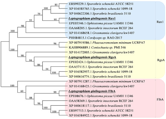 Gan, T.; An, H.; Tang, M.; Chen, H. Phylogeny of Regulators of G-Protein Signaling Genes in Leptographium qinlingensis and Expression Levels of Three RGSs in Response to Different Terpenoids. Microorganisms 2022, 10, 1698. https://doi.org/10.3390/microorganisms10091698