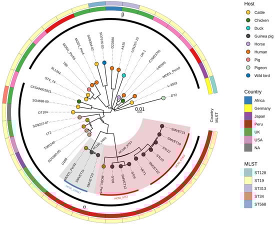 3.2. Phylogenomic Analysis of S. Typhimurium Isolated in Peru