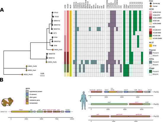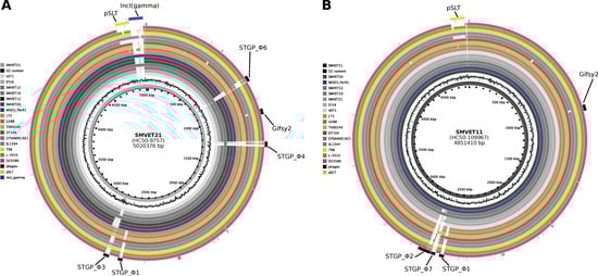3.4. Differential Gene Content in S. Typhimurium Isolates from Guinea Pigs Is Driven by Phages