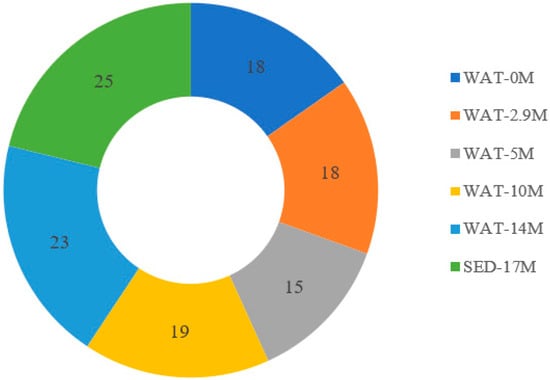 Number of nitrogen-fixing bacterial isolates obtained from each depth. WAT represents water sample and SED represents sediment sample.