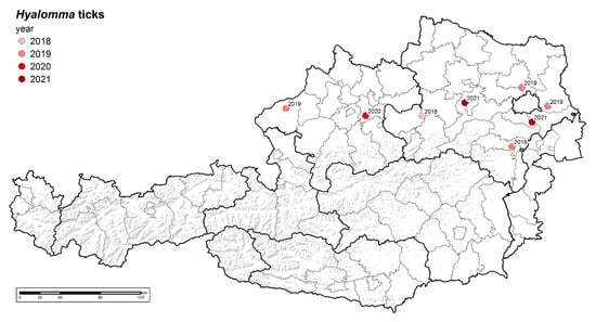 Hyalomma sp. findings in Austria in the years 2018–2021.