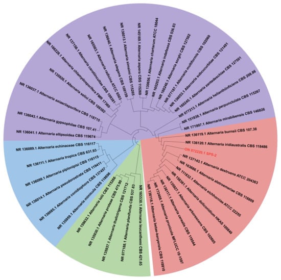 Tao, J.; Bai, X.; Zeng, M.; Li, M.; Hu, Z.; Hua, Y.; Zhang, H. Whole-Genome Sequence Analysis of an Endophytic Fungus Alternaria sp. SPS-2 and Its Biosynthetic Potential of Bioactive Secondary Metabolites. Microorganisms 2022, 10, 1789. https://doi.org/10.3390/microorganisms10091789