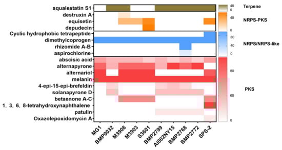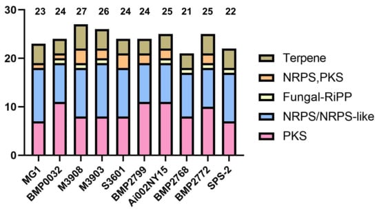 Chicago/Turabian StyleTao, Jianyun, Xuelian Bai, Mingyuan Zeng, Mengshi Li, Zhe Hu, Yunfen Hua, and Huawei Zhang. 2022. "Whole-Genome Sequence Analysis of an Endophytic Fungus Alternaria sp. SPS-2 and Its Biosynthetic Potential of Bioactive Secondary Metabolites" Microorganisms 10, no. 9: 1789. https://doi.org/10.3390/microorganisms10091789