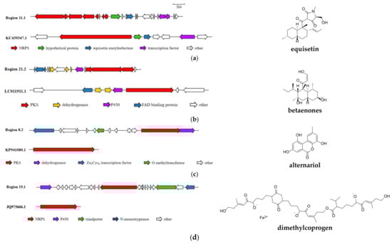 - Ugai, T.; Minami, A.; Fujii, R.; Tanaka, M.; Oguri, H.; Gomi, K.; Oikawa, H. Heterologous expression of highly reducing polyketide synthase involved in betaenone biosynthesis. Chem. Commun. 2015, 51, 1878–1881. [Google Scholar] [CrossRef] [PubMed]