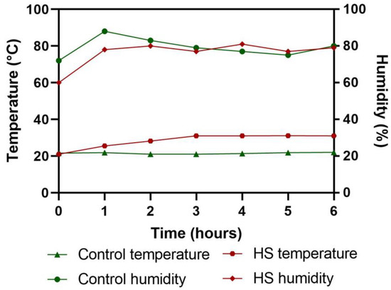 Before and after the HS experiment, rectal temperature (RT) was recorded by inserting a digital thermometer (HI 91610, Hanna instruments Inc., Padova, Italy) up to approximately 3 cm inside the cloaca. The difference in the RT before and after HS is presented as ΔT.