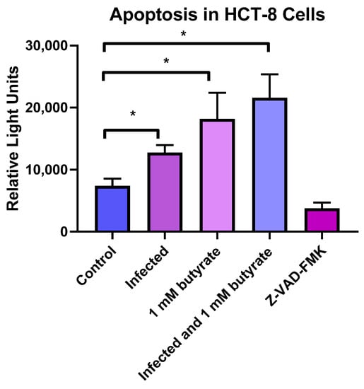3.3. Butyrate and C. parvum Infection Increases Apoptosis in HCT-8 Cells