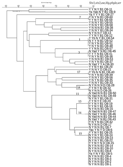 3.5. Genetic Diversity of STEC Strains from Goats as Revealed by M13 RAPD PCR